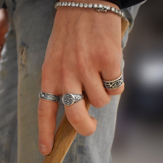 Sterling Silver Medieval Flame Tribal Band