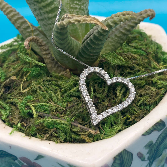 1/2 Ct Diamond Heart Pendant Necklace in Sterling Silver On 18” 0.6mm Box Chain